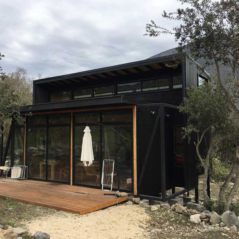 Construcción modular tipo lodge (60 m2), ubicada en los faldeos del cerro La Campana y personalizada a las necesidades de una familia de 4 personas.
